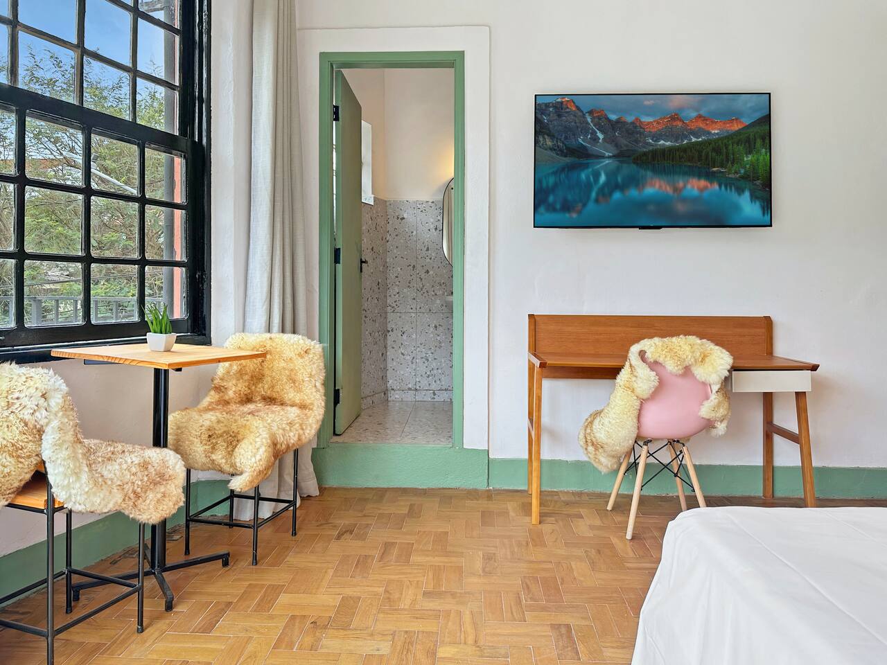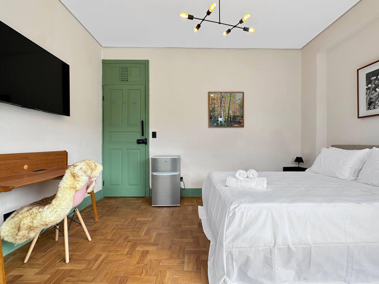 - High-speed Wi-Fi, perfect for work and leisure - Complete bed linens and towels - Daily housekeeping included - Private balcony - Room with queen-bed - 55-inch TV - Minibar - Electric blanket - Space heater - Utensils available in the room: Glasses, cups, and a bottle opener - Work desk - Luggage rack - Iron - Private bathroom with gas shower, glass enclosure, and hairdryer - Soap and shampoo available throughout your stay