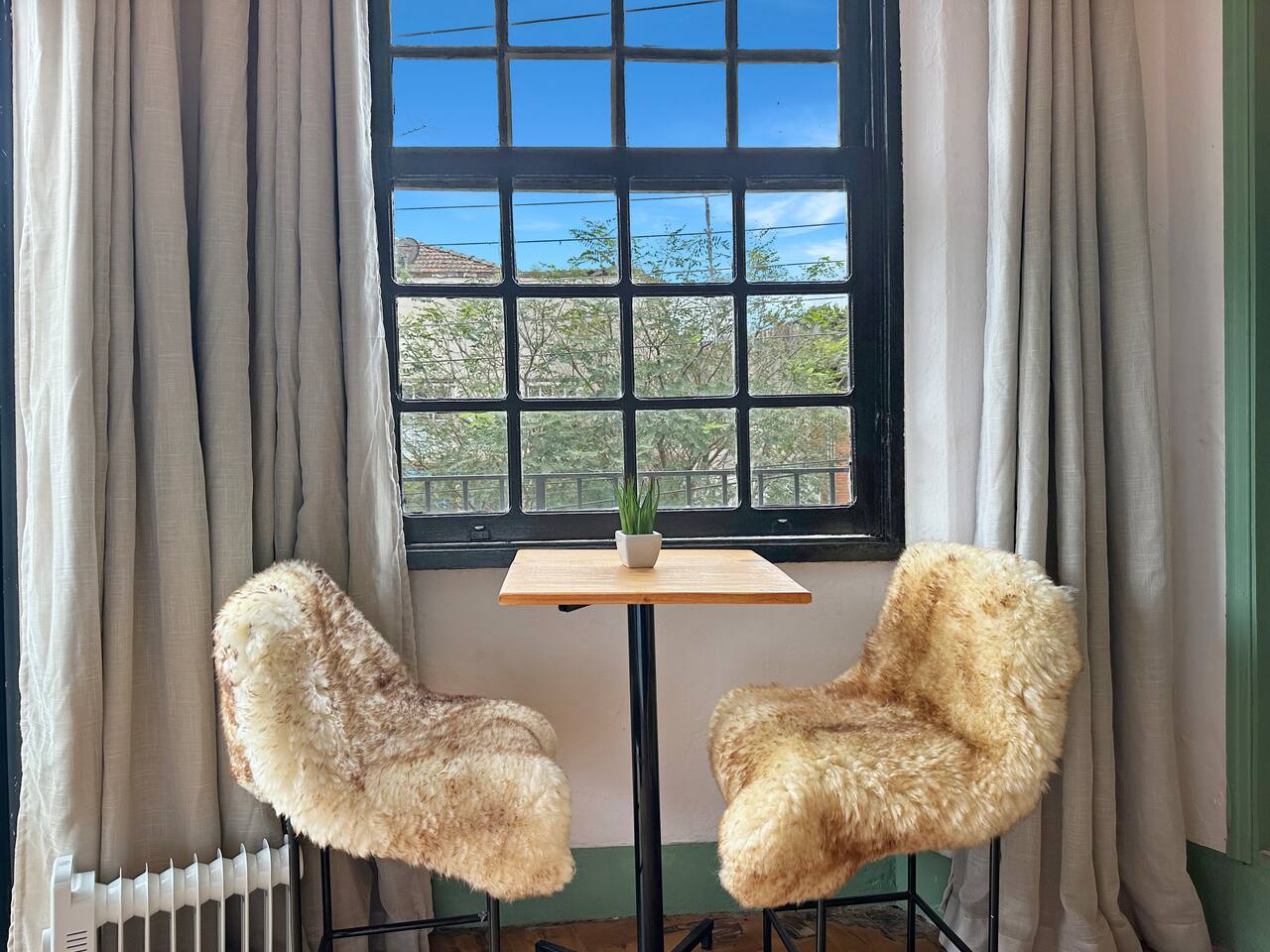 - The shared kitchen and dining area are well-equipped, allowing you to prepare or reheat food from delivery. - A Nespresso coffee machine and fondue pot are available for use. - Continental breakfast with a light and tasty selection to start your day right: freshly baked cake, cheese bread, coffee, and milk, served next to the shared kitchen until noon. - 1 rotating parking space, subject to availability. Commercial area with plenty of street parking, especially at night and on weekends.