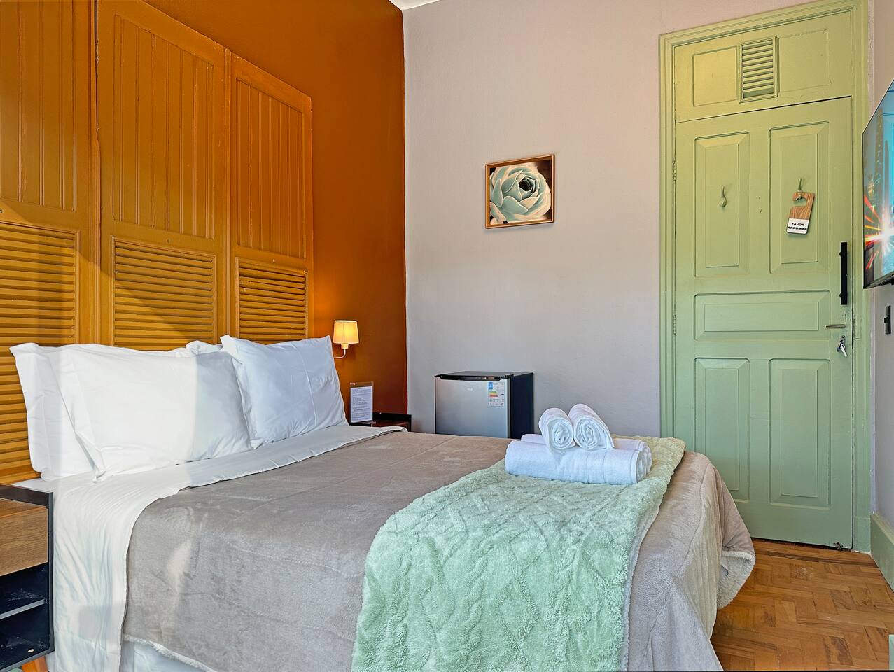 - The shared kitchen and dining area are well-equipped, allowing you to prepare or heat takeout food. - Nespresso coffee machine and fondue pot available for use. - Continental breakfast, with a light and tasty selection to start the day right: fresh cake, cheese bread, coffee and milk, served next to the shared kitchen until noon. - Luggage storage, upon request, so you can leave your bags safely and enjoy the day with complete freedom. - 1 rotating parking space, subject to availability. Commercial area with several places to park on the street, especially at night and on weekends. - Here you can recharge your electric car conveniently and safely. Price: R$ 1.50 per kWh and a minimum recharge of R$ 100.00