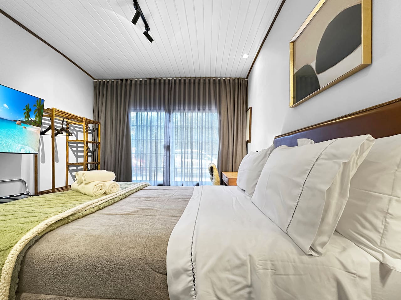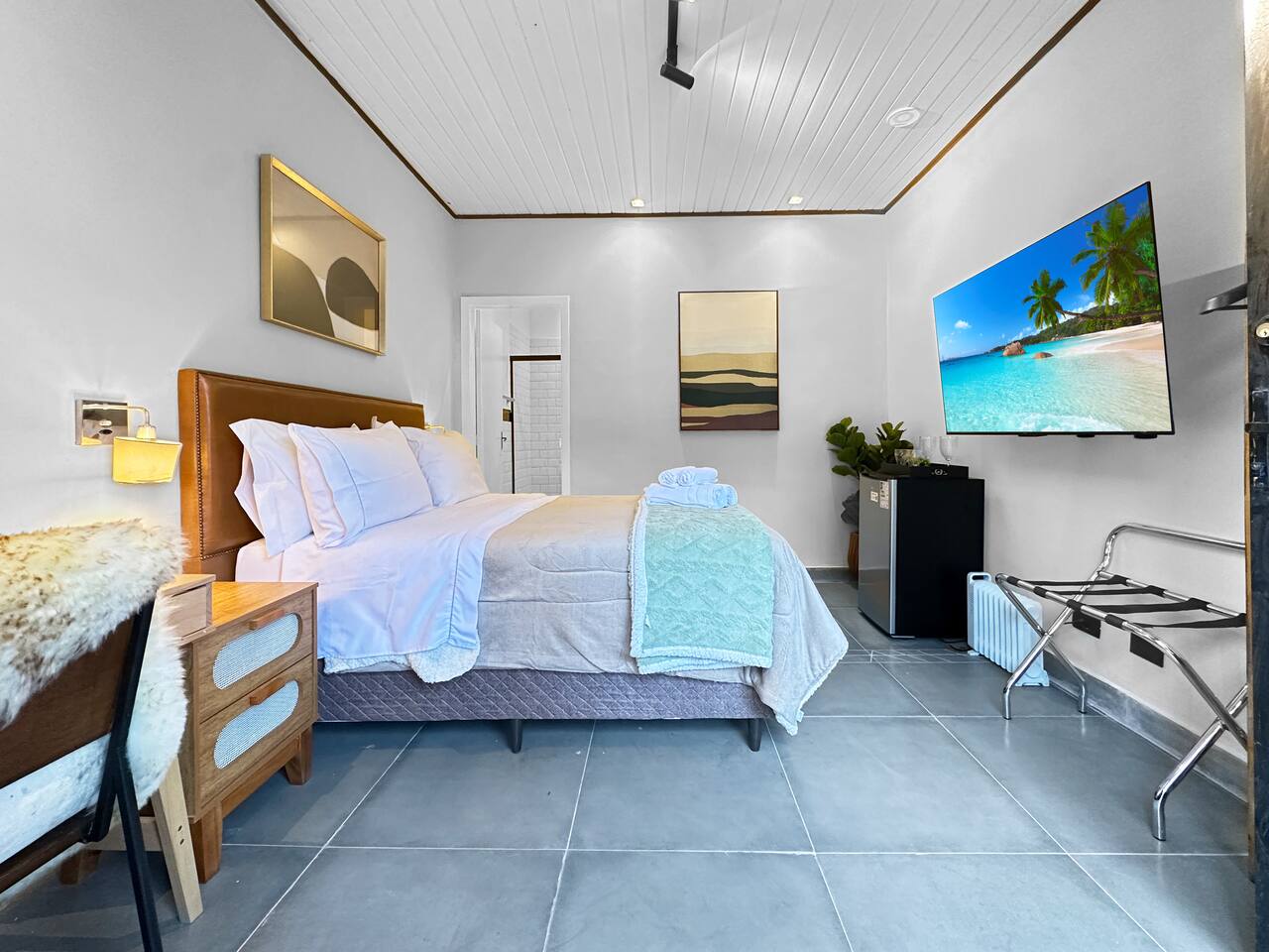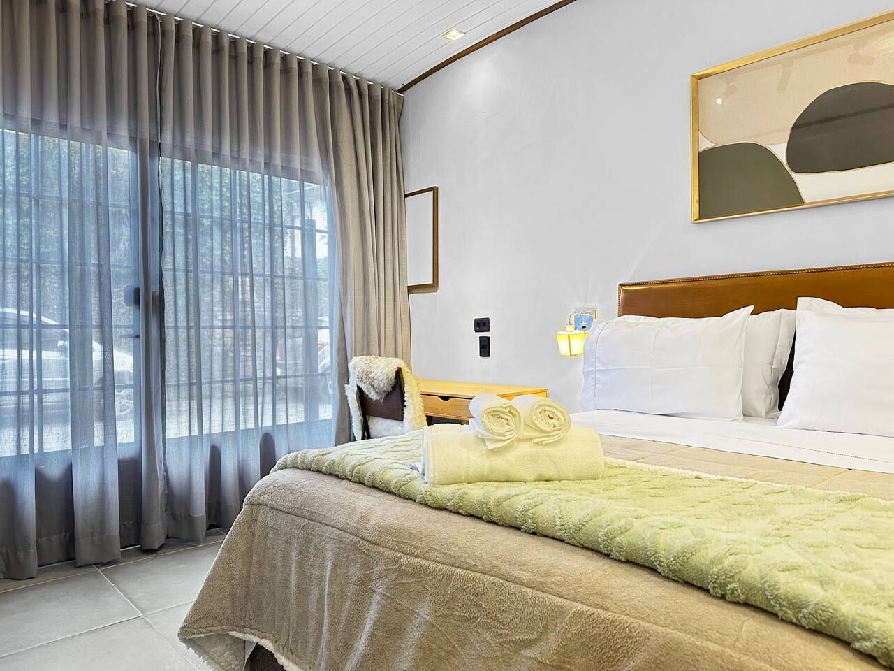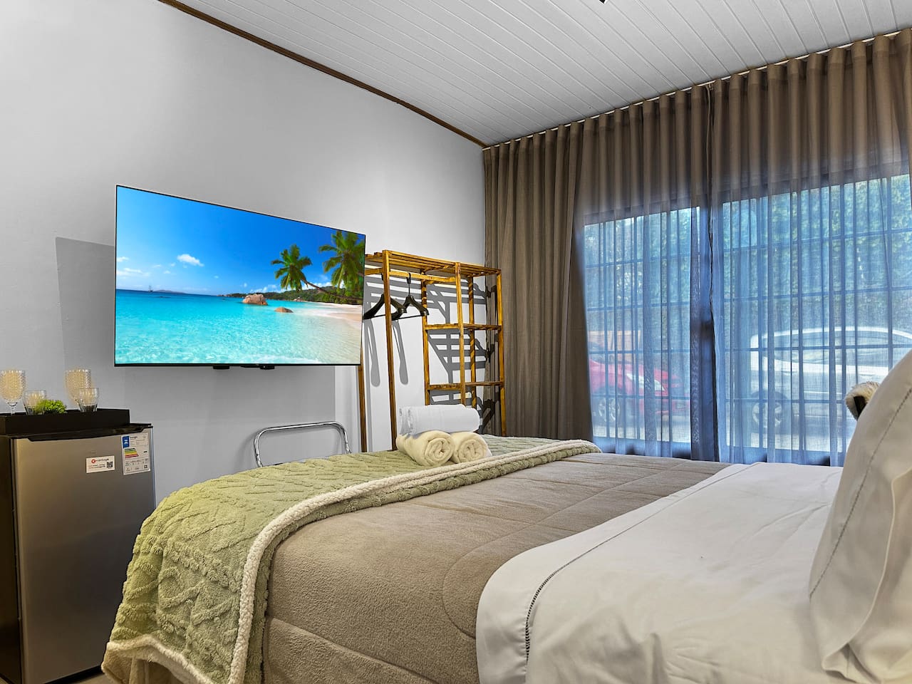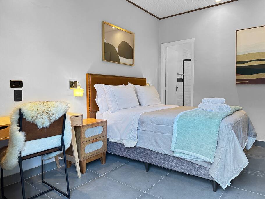 - High-speed Wi-Fi, perfect for work and leisure - Complete bed linens and towels - Daily housekeeping included - Room with double-size bed - 55-inch TV - Minibar - Electric blanket - Space heater - Utensils available in the room: Glasses, cups, and a bottle opener - Work desk - Luggage rack - Iron - Private bathroom with gas shower, glass enclosure, and hairdryer - Soap and shampoo available throughout your stay